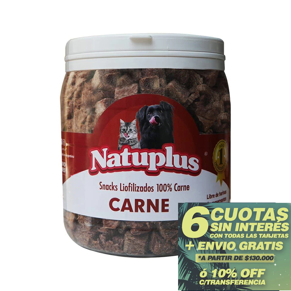 Los Snacks Natuplus son bocados 100% Carne Liofilizados. Presentación Magnum x2000 ML. Carne (Bola de Lomo) , venta exclusiva en forma directa y consumidores finales. Sin harinas, ni aditivos ni conservantes. Contienen 70% Proteína. Elaborados con 1 solo ingrediente: Carne vacuna. Listo para dar como premio. Apto para perros, gatos, hurones y erizos.